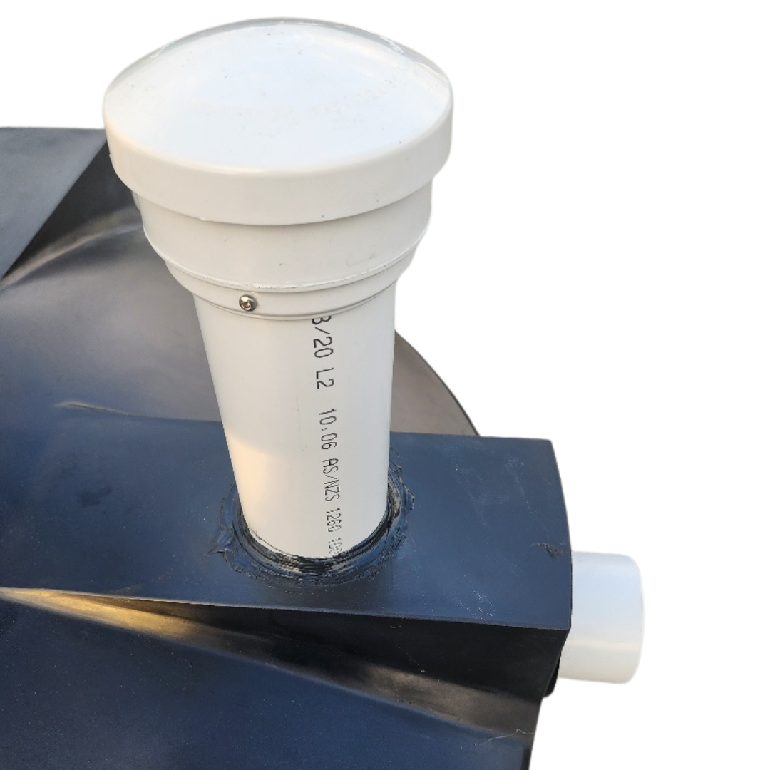 - Includes a 100mm inlet connection, mushroom air vent, and 100mm outlet.